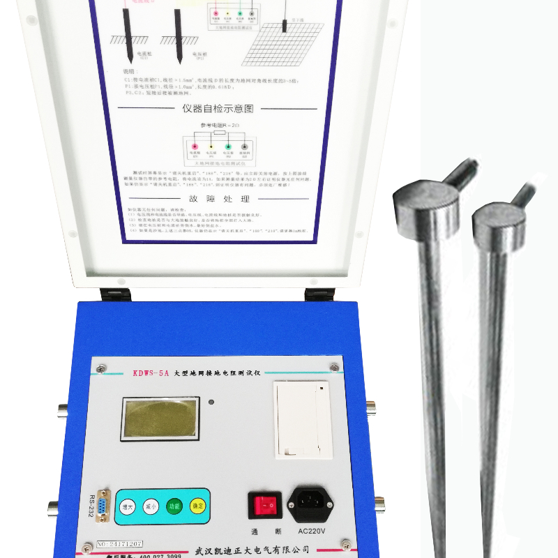 KDWS-10A型大型地網接地電阻測試儀,可測變電站地網(4Ω)、水火電廠、微波站(10Ω)、避雷針(10Ω)多用機型,采用了新型變頻交流電源,并采用了微機處理控制和信號處理等措施,很好的解決了測試過程中的抗干擾問題,簡化了試驗操作過程,提高了測試結果的精度和準確性,大大降低了試驗人員的勞動強度和試驗成本。