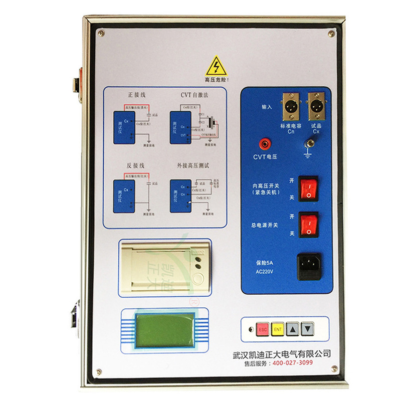 4.具有正/反接線,內/外標準電容,內/外高壓多種工作模式,可做各種常規(guī)介損試驗,不需外接輔助設備。