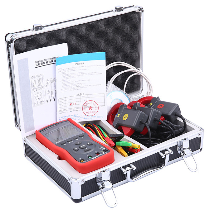 主機(jī):1件;電流鉗:3件;測(cè)試線:4條;RS232數(shù)據(jù)線:1條;光盤:1個(gè);電池(LR6):6節(jié);儀表箱:1件