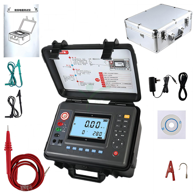 KD50A系列數字絕緣電阻測試儀又名兆歐表、高壓絕緣電阻表,用于絕緣電阻的測試。本儀表具有大屏幕LCD灰白背光顯示、數據存儲、數據查閱、報警、自動放電、充電、自動關機等功能。同時還具備測量直流電壓交流電壓吸收比和極化指數功能。整機美觀,量程寬廣,分辨率高,操作便捷,攜帶方便,準確、可靠、性能穩定,輸出功率大,抗干擾能力強。