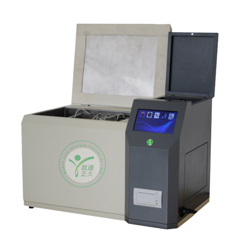 KDSR-303D全自動水溶性酸測試儀(比色法)是根據(jù)中華人民共和國國家標(biāo)準(zhǔn)GB/T7598-2008運行中變壓器油水溶性酸測試法及相關(guān)標(biāo)準(zhǔn)設(shè)計制造。采用大屏幕液晶顯示,利用微處理器控制,可以根據(jù)用戶的設(shè)定條件自動完成加熱、恒溫、振蕩、取樣、測試、清洗、打印等功能,可以一次性測量1-6個樣品,縮短了用戶的測試時間。