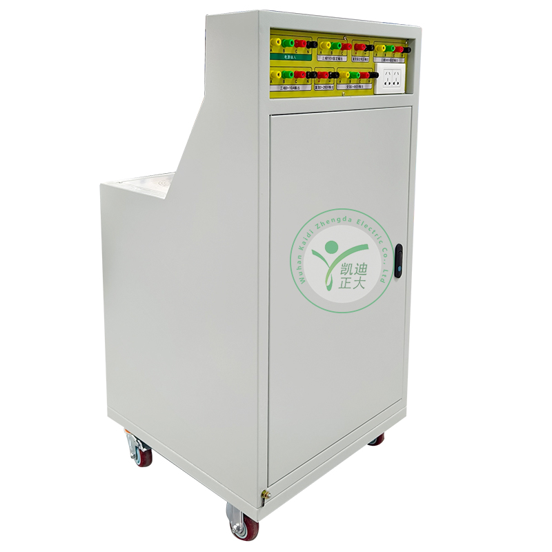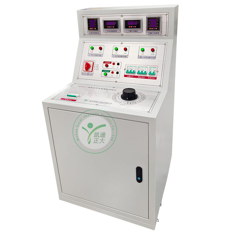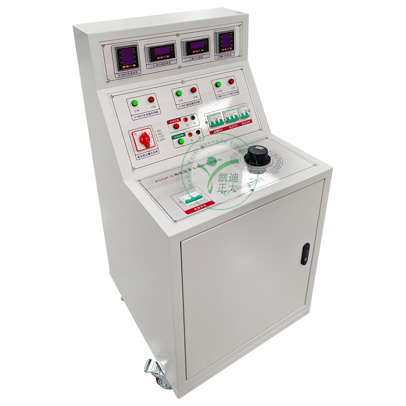 KDGK-II 高低壓開關柜通電試驗臺用于高低壓開關柜生產廠家對所生產的高低壓開關柜進行出廠前的各項通電試驗。它能提供各種交、直流電源,便于對開關柜的檢測,提高工作效率。