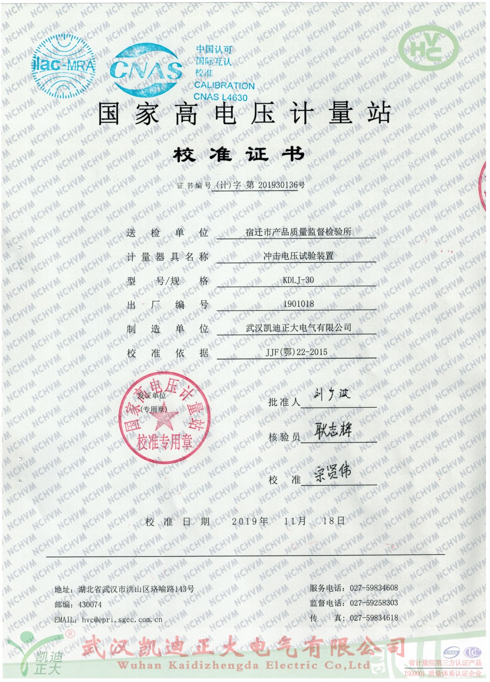 我司以最高分獲得評標(biāo)方的認(rèn)可,中標(biāo)低壓成套開關(guān)設(shè)備檢測:KDHL-100A接觸電阻測試儀、KD305絕緣電阻測試儀、KDLJ-30kV沖擊電壓試驗裝置、KDWS-82大電流溫升試驗臺、KDYDJ工頻耐壓試驗裝置(3kvA50kV)、KDGK-F機(jī)械特性綜合測試儀。同時,我司設(shè)備獲得武漢市計量檢測研究院檢定、校準(zhǔn)合格。KDLJ-30kV沖擊電壓試驗裝置獲得國家高電壓計量站校準(zhǔn)證書:證書編號(計)字第201930136號,送檢單位:宿遷市產(chǎn)品質(zhì)量監(jiān)督檢驗所。校準(zhǔn)依據(jù):JJF(鄂)22-2015.