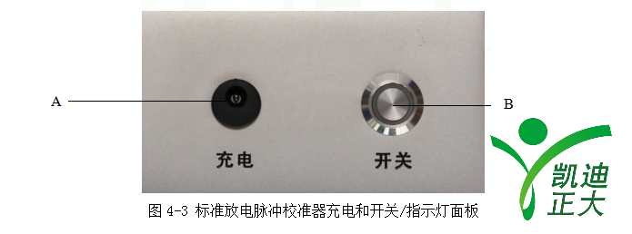標準放電脈沖校準器內置鋰電池,充電和開關/指示燈面板如圖4-3所示: