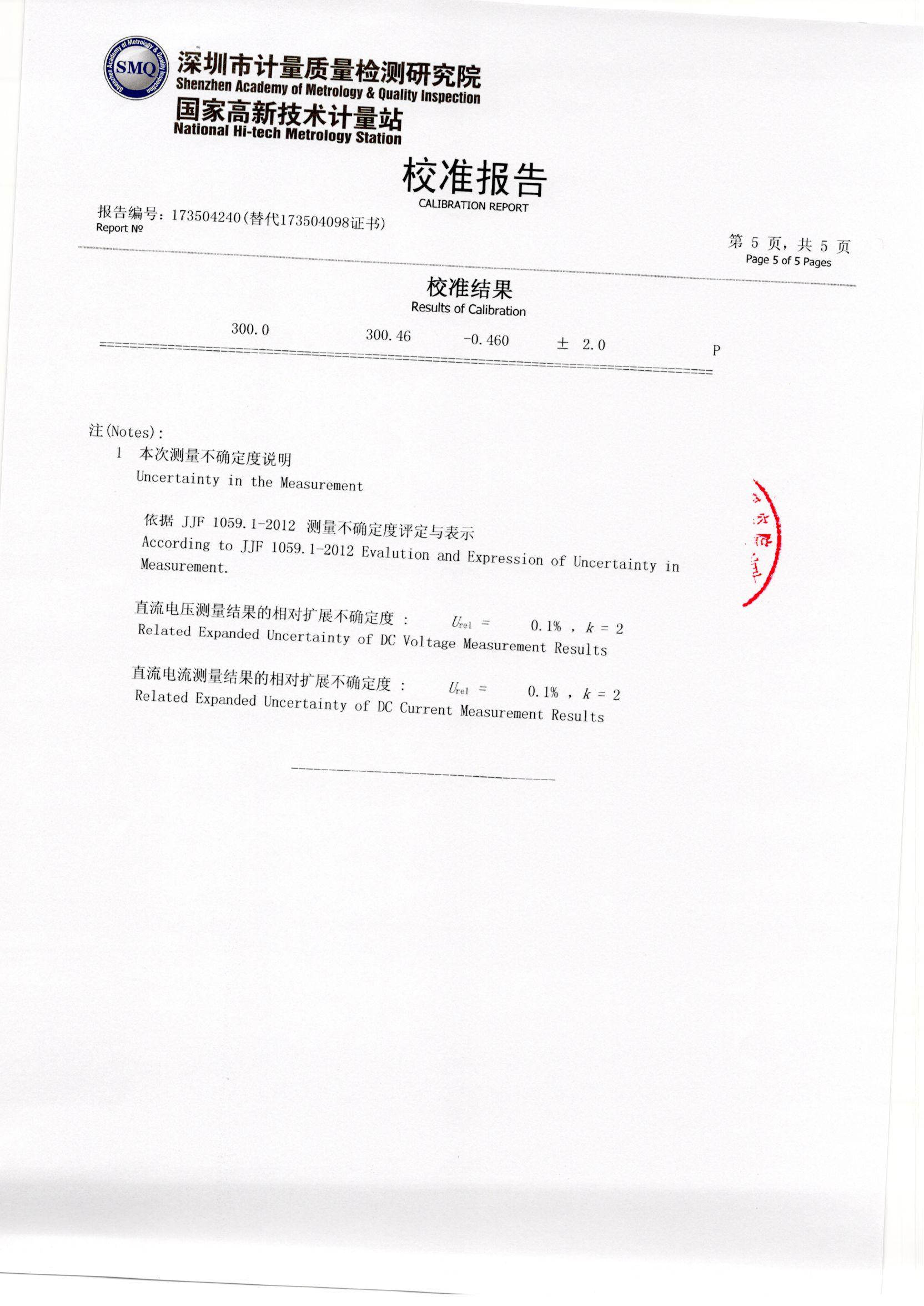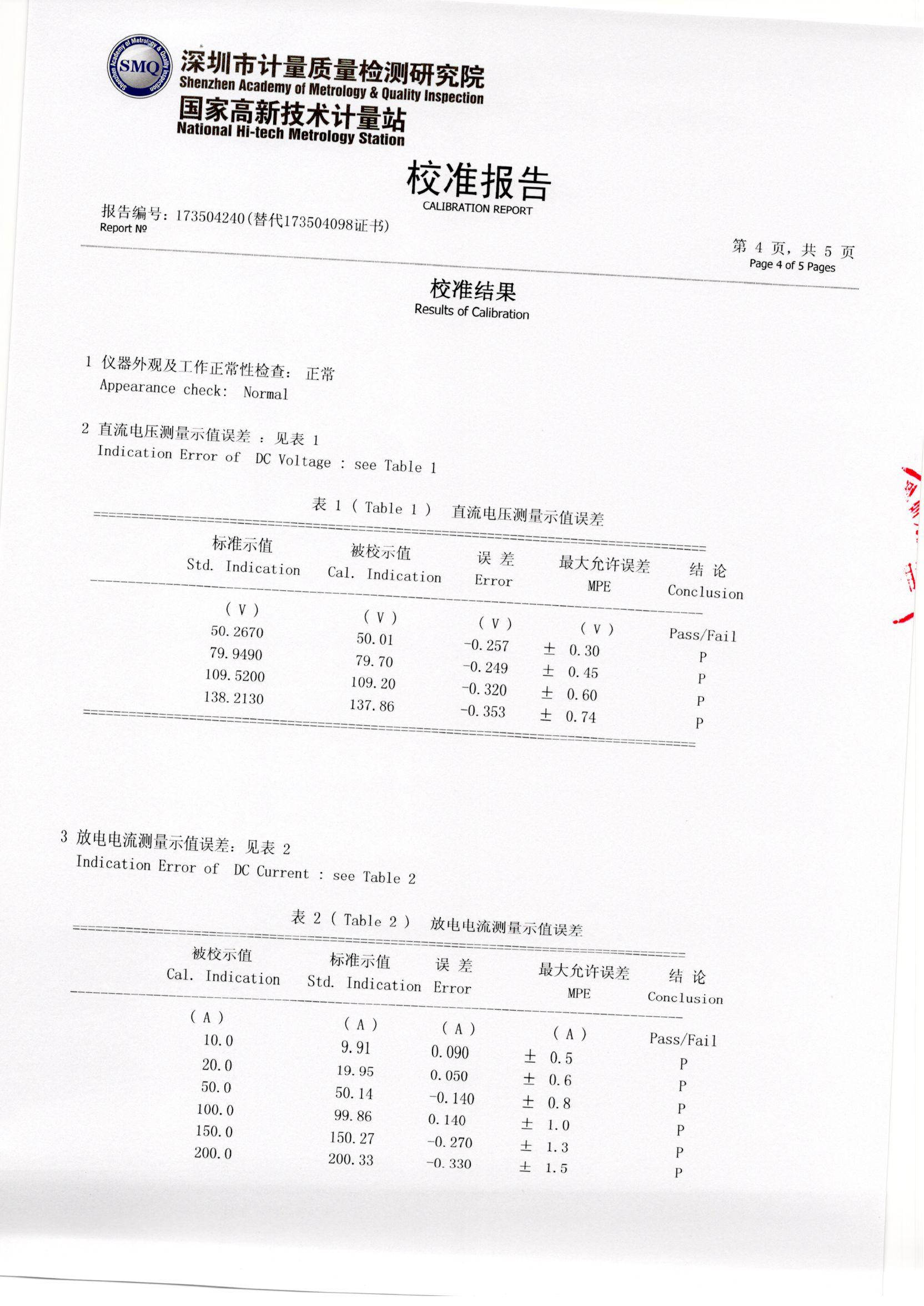 應中廣核遼寧紅沿河核電有限公司的需求,將武漢凱迪正大電氣公司生產(chǎn)的KDZD880(110V300A)智能蓄電池放電儀出具國家高新技術(shù)研究院的計量報告后才能使用。校準報告:173504098證書號,出廠編號:KD15042815,資產(chǎn)編號:500056775,校準依據(jù):參考JJF158-2016數(shù)字多用表校準規(guī)范JJF(軍工)108-2015電池充放電測試儀校準規(guī)范。嚴格出具檢定合格報告。