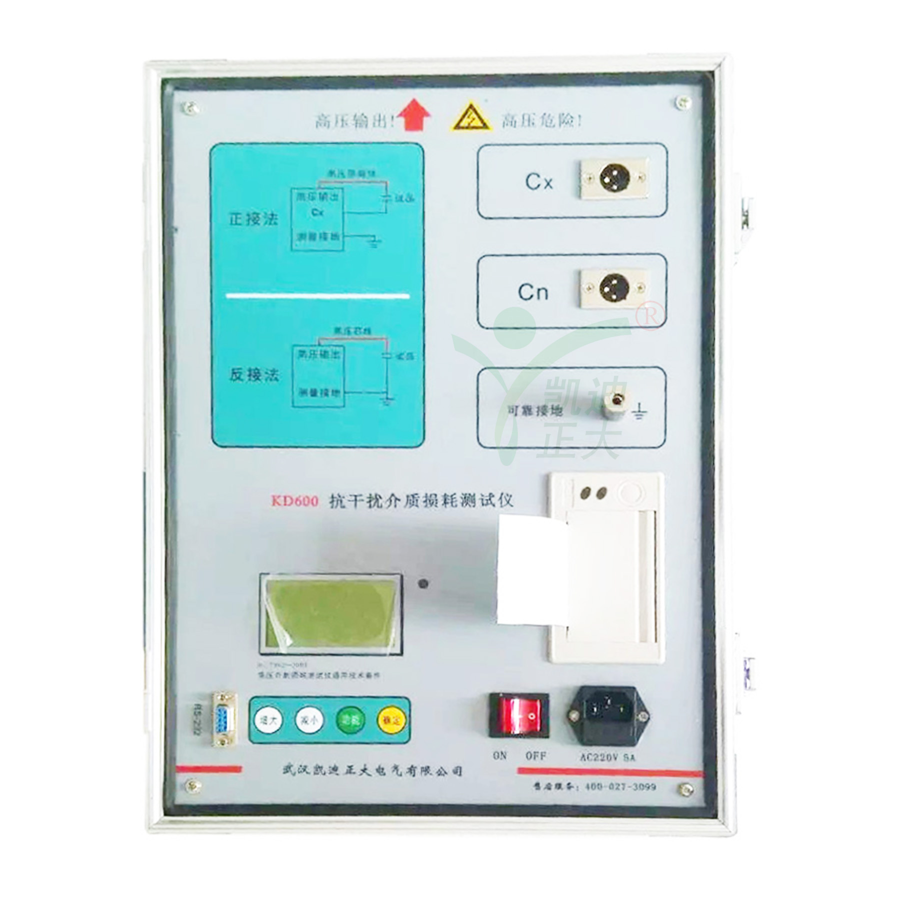 KD600介質損耗測試儀可用正、反接線方法測量不接地或直接地的高壓電器設備,同時可以測量電容式電壓互感器的tgδ及主電容C1、C2電容量。