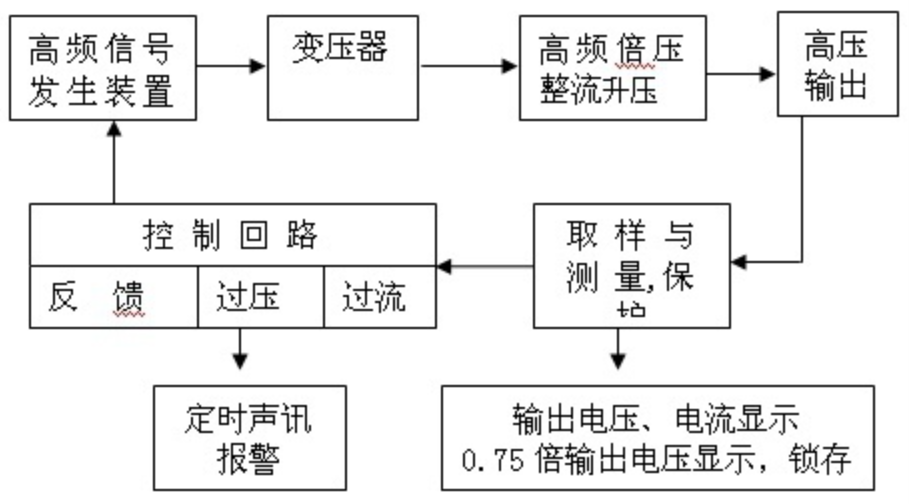 其工作原理是應用最新的PWM中頻脈寬調制技術,閉環調整,采用了電壓大反饋,使電壓穩定度大幅度提高。使用性能卓越的大功率IGBT器件及其驅動技術,并根據電磁兼容性理論,采用特殊屏蔽、隔離和接地等措施。使直流高壓發生器具備了高品質、便攜式,并能承受額定電壓放電而不損壞。