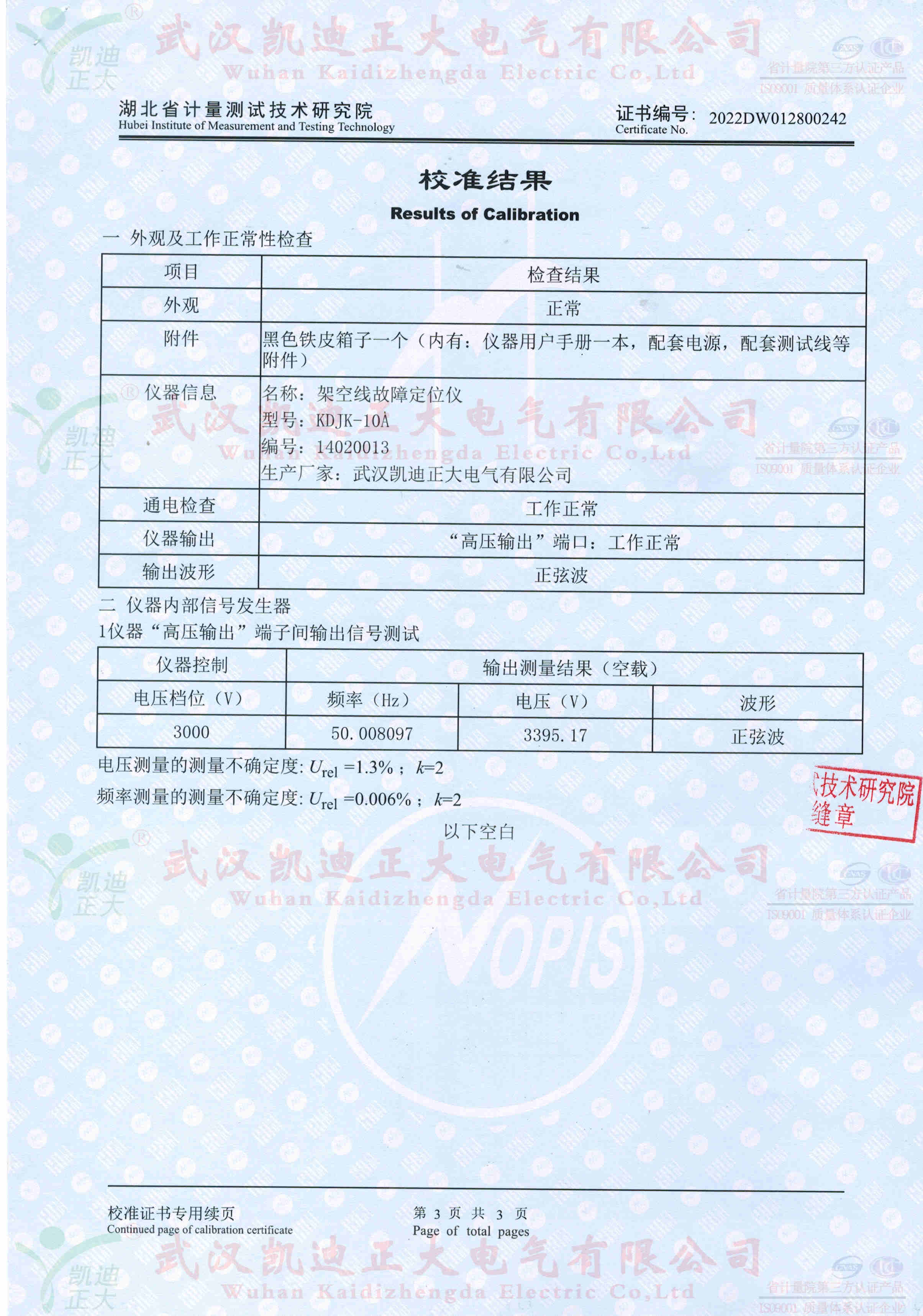 KDJK-10A故障檢測儀特性及技術(shù)參數(shù)獲得湖北省計(jì)量測試技術(shù)研究院的校準(zhǔn)證書,設(shè)備為電力工業(yè)電氣設(shè)備質(zhì)量檢驗(yàn)測試中心的要求。計(jì)量設(shè)備的高壓測試輸出的電壓、波形正玄波、電壓檔位的選擇。