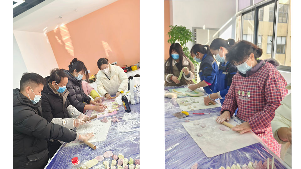在團(tuán)隊(duì)的精心組織下,大家分工明確,各司其職,卻又默契十足。有的員工手法嫻熟地揉面、搟皮,那一張張薄如蟬翼、圓如玉盤的面皮,在他們的指尖跳躍,仿佛是冬日里靈動的藝術(shù)品;有的則專注地調(diào)配餡料,將新鮮的蔬菜與精選的肉末巧妙融合,每一口都是對味蕾的誘惑;還有的員工則是包餃子的高手,他們靈巧地將餡料置于面皮之上,輕輕一捏一合,一個(gè)個(gè)形態(tài)各異、憨態(tài)可掬的餃子便躍然桌上,有的宛如小船,有的似元寶,還有的帶著幾分俏皮的褶皺,仿佛在訴說著各自的故事。