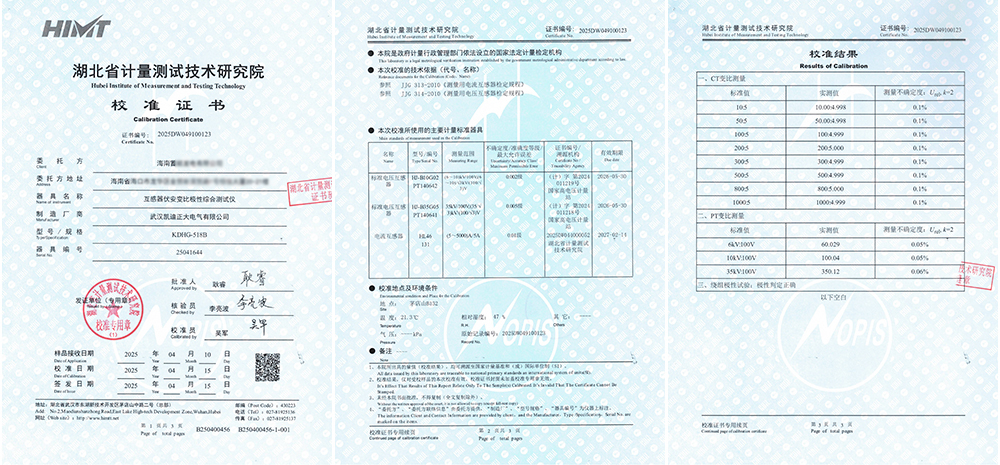 兩套設(shè)備均通過精度、重復(fù)性及穩(wěn)定性測試,同步獲得校準(zhǔn)證書(證書編號:2025DW049100124;2025DW049100123)。此次雙機全項達標(biāo)不僅印證了武漢凱迪正大產(chǎn)品的可靠品質(zhì),更彰顯了海南客戶在電力檢測裝備選型中的精準(zhǔn)判斷,為深化長期合作奠定了堅實互信基礎(chǔ)。