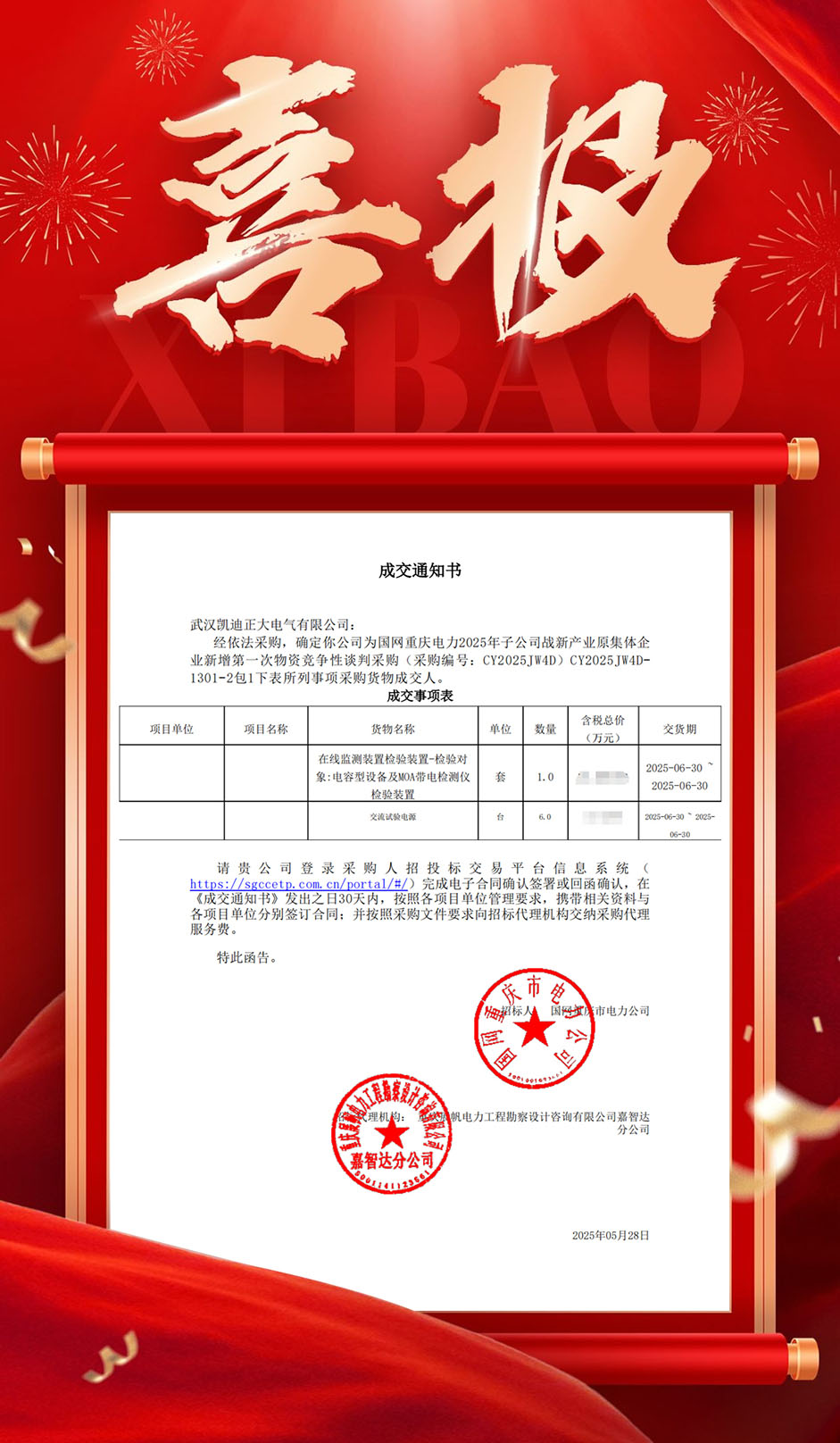 恭喜凱迪正大成功中標(biāo)國(guó)網(wǎng)重慶電力2025年度招標(biāo)項(xiàng)目,助力電網(wǎng)智能化升級(jí)