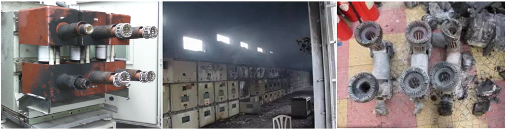 由于開關柜母線室是連通的,當一個間隔故障時,電弧侵犯臨柜,往往造成“火燒連營” 事故,致使多面開關柜燒毀。